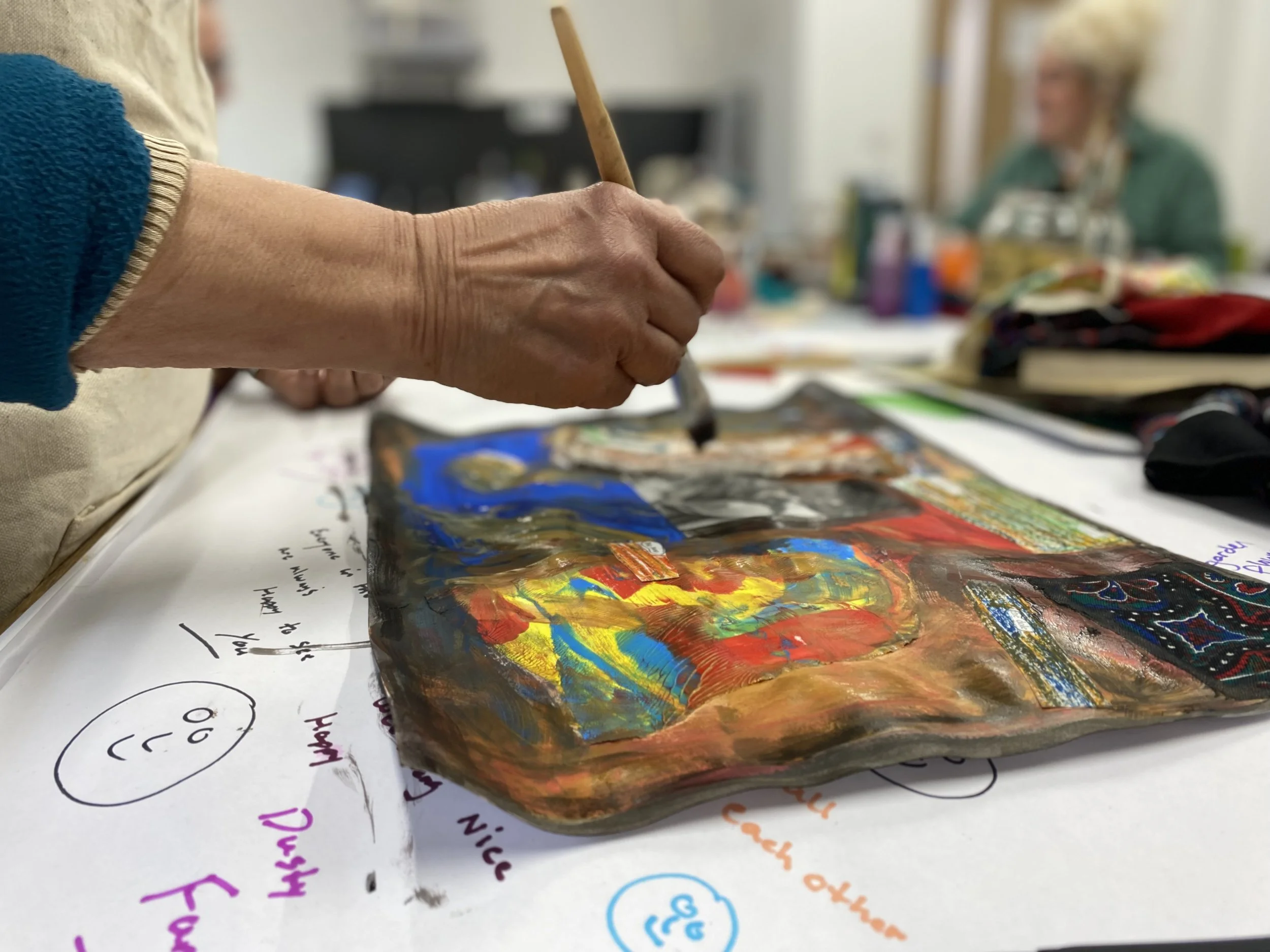 As a Creative Therapeutic Practitioner, I facilitate wellbeing-focused art sessions within the local community, creating spaces for playful self-expression, connection, and creativity. I’ve had the privilege of collaborating with organisations such as Ace Place, Chapter Arts, Mental Health Matters, Age Alive, Llandough Hospital, Hijinks, and Makeit RCT, delivering sessions tailored to a range of interests and needs.